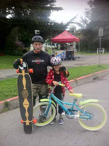 1. Mike Shumann, sports director and news anchor for KGO (ABC) San Francisco is doing a 2-minute piece on me. Mike's an ex-49er wide receiver, was on Super Bowl team with Joe Montana. He's a great guy, was fun talking to him. Photo is of a little girl in the park when I was being filmed. I got her on my board for her first ride. 2. Sailor Jerry Rum is doing 30 short videos on people they find interesting and they asked if I'd do one. I asked for a bottle of rum, which arrived, and I liked it, so I did it. Four very cool guys from All Ages Productions came out and we spent 2-3 hours talking and skating. It'll eventually be on YouTube. Music de Mois My Blog State of the state around here May good karma consistently flow past your wing tips. "The mind and the body are the same thing. One is a reflection of the other." Ida Rolf (From Rolfer Andy Crow's new book, Stuctural Integration