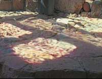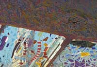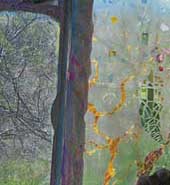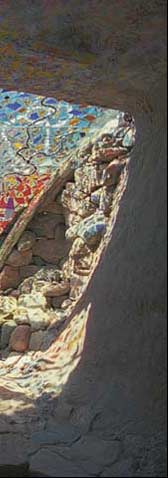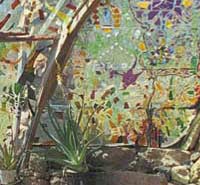 Page 125 Text: Greenhouse room built out of old auto windshields siliconed together. Stained glass is siliconed onto inside of glass.