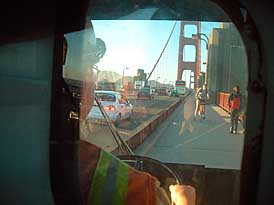 It turns out that Krystal does photo framing work for Bob David, the official bridge photographer and staff architect, and he had taken them up. And it had been fantastic. I beg. Please, if there’s ever a chance . . . I love the bridge and would do anything to get up there.