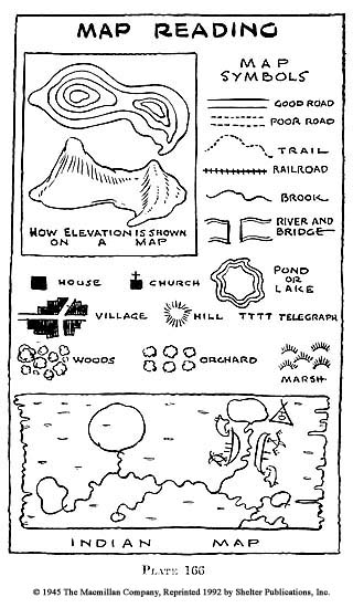 Plate 166 shows how pictographic these symbols are, so that they can be easily identified. Most maps are drawn to scale, and the measurement is usually indicated as Scale 1 inch to 1 mile, or some such method of showing distance.